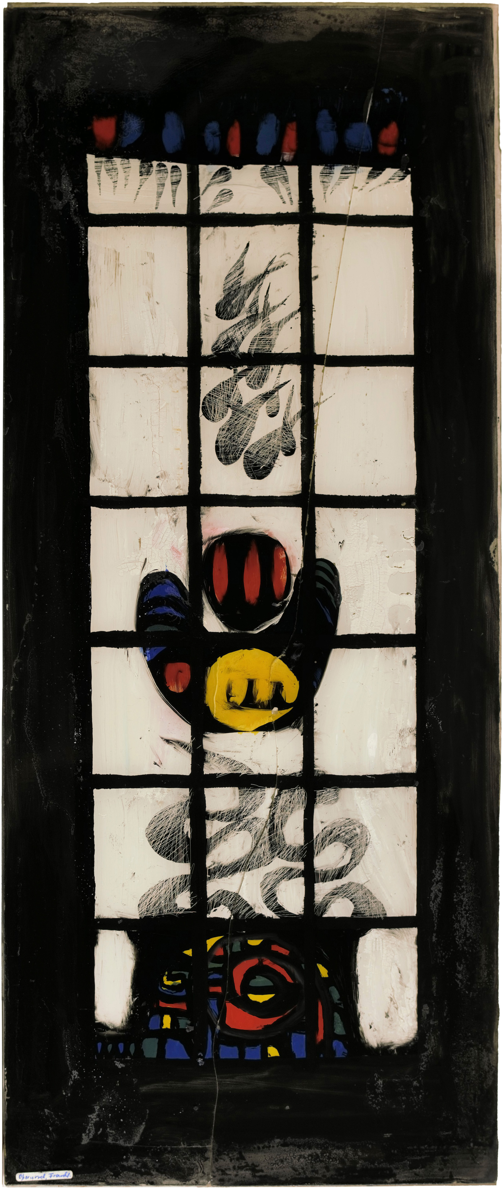 Entwurf für Glasfenster / Zwölf Apostelkirche Augsburg / beschädigt, Glas gebrochen, auf zweite Scheibe aufgeklebt